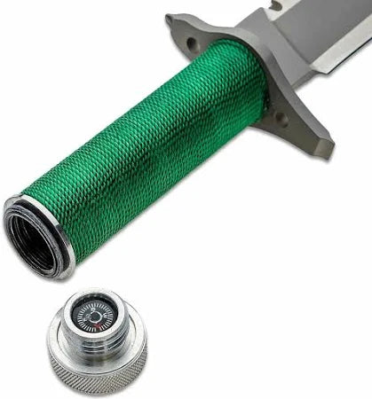 • Handle: Hollow, wrapped in green nylon cord with waterproof O-ring and survival kit (compass, matches).